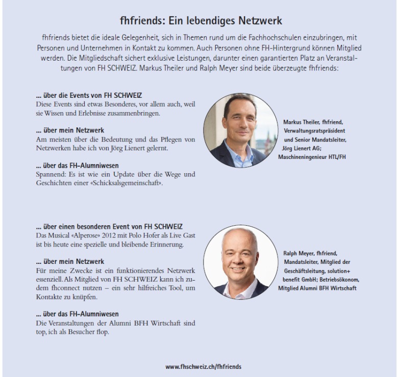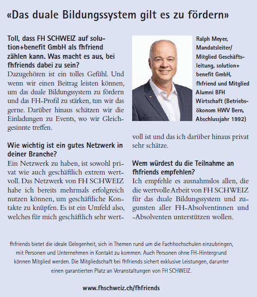 «Ohne es mir damals so richtig bewusst zu sein, habe ich im FH-Studium das Rüstzeug und das Netzwerk für mein eigenes Unternehmen geholt. Dafür bin ich heute noch sehr froh und engagiere mich deshalb gerne bei Jungunternehmen.»