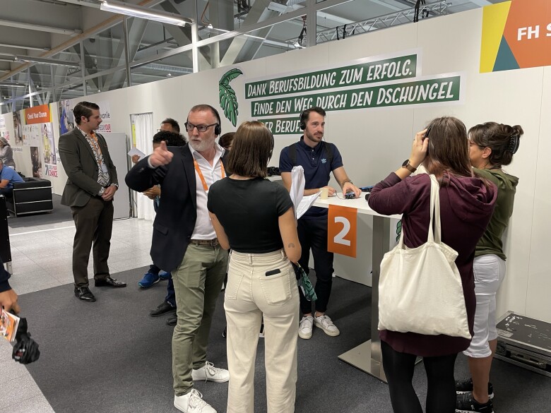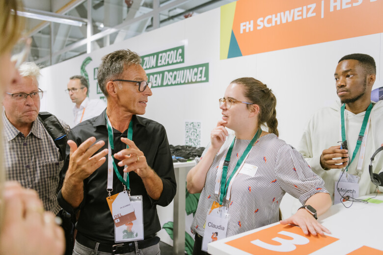 FH-Botschafter Urs Dürsteler mit Alicia Bernasconi von der Geschäftsstelle FH SCHWEIZ
