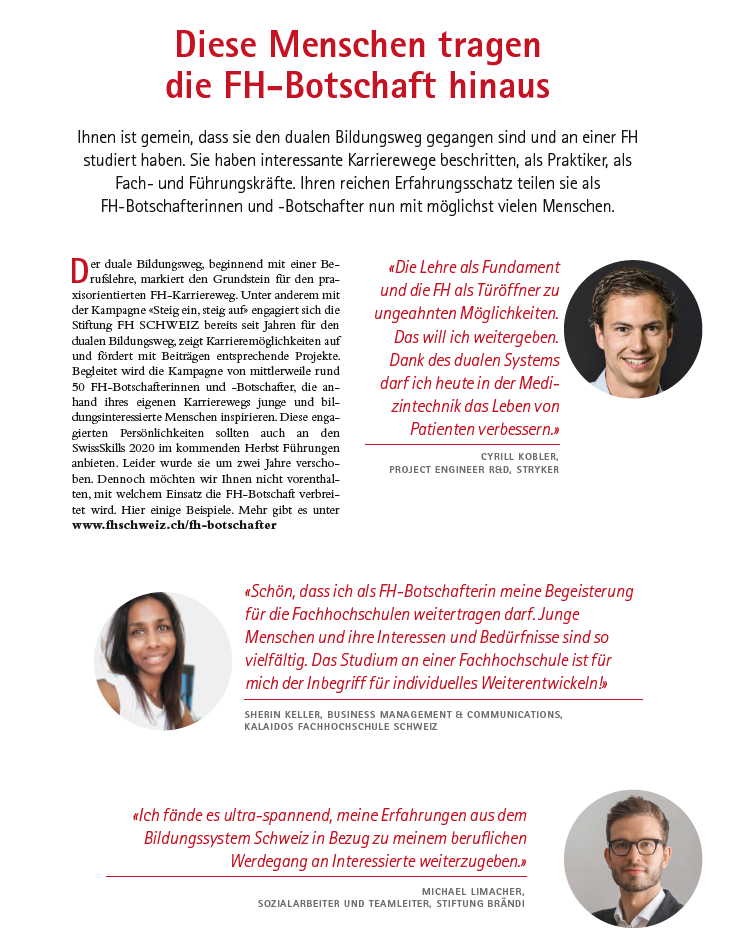 «Die Lehre als Fundament und die FH als Türöffner zu ungeahnten Möglichkeiten. Das will ich weitergeben. Dank dem dualen System darf ich heute in der Medizintechnik das Leben von Patienten verbessern.»