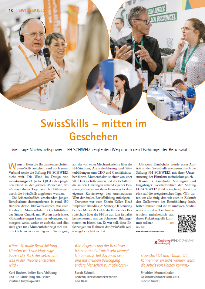 Besuch bei Schulklassen, Interviews, Statements, Social Media, Berufsinfo-Messen